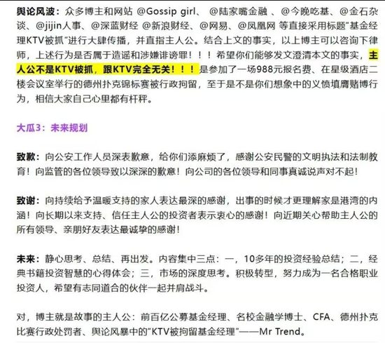 他要为自己“在KTV被抓”的传言正名。“我不是在KTV被抓的!我跟KTV完全无关!”这句话,听起来像极了某位艺人深夜发微博的标准开头。但这次,主角是一位管理过数十亿资产的博士基金经理。