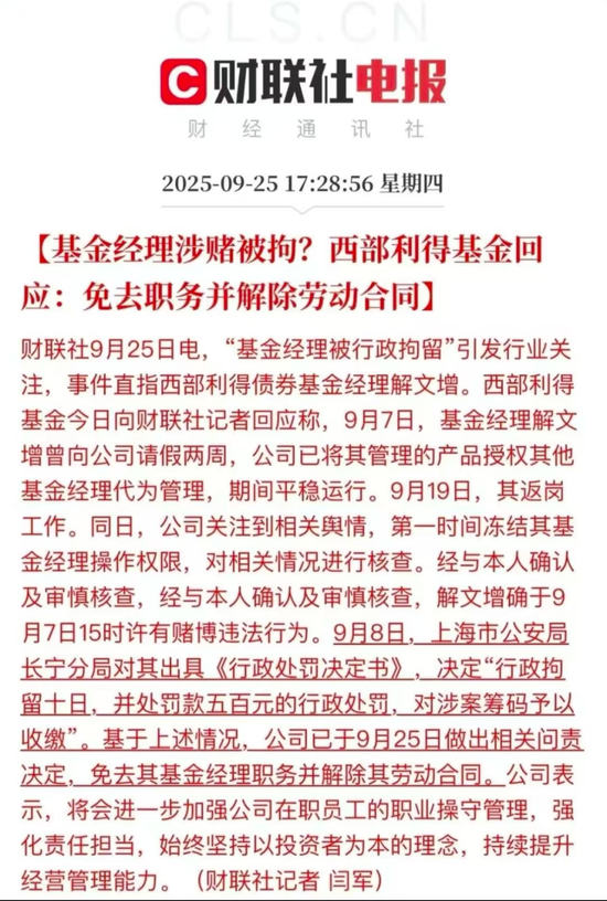 而现实中往往是:人先走了,公告还在路上。目前,解文增管理的基金仍未发布正式的基金经理变更公告,代销平台上的名字也没换。不少基民表示:“我现在持有的到底是解文增的产品,还是AI托管?”专家建议:不如让基金经理跟投自己的产品,锁定期一年以上。一旦违法离职,未解锁部分延期支付,既能约束行为,也能补偿持有人损失。——这下好了,以后简历上写“擅长风险管理”,还得加上一句:“本人无不良嗜好,不打牌、不赌球、不去未备案棋牌室。”